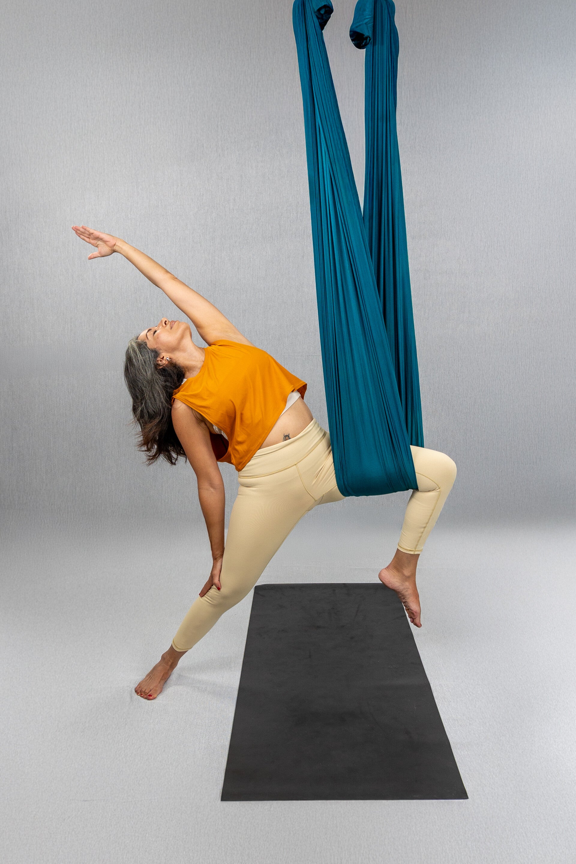 Aerofit es un método innovador que he desarrollado para combinar lo mejor del Yoga y Pilates, llevándolos a otro nivel gracias al uso de una hamaca especial o tela. Esta práctica única no solo es un desafío emocionante, sino que también te ayuda a mejorar tu flexibilidad, equilibrio y propiocepción. Además, ofrece los increíbles beneficios de la relajación, creando un espacio perfecto para el bienestar físico y mental.